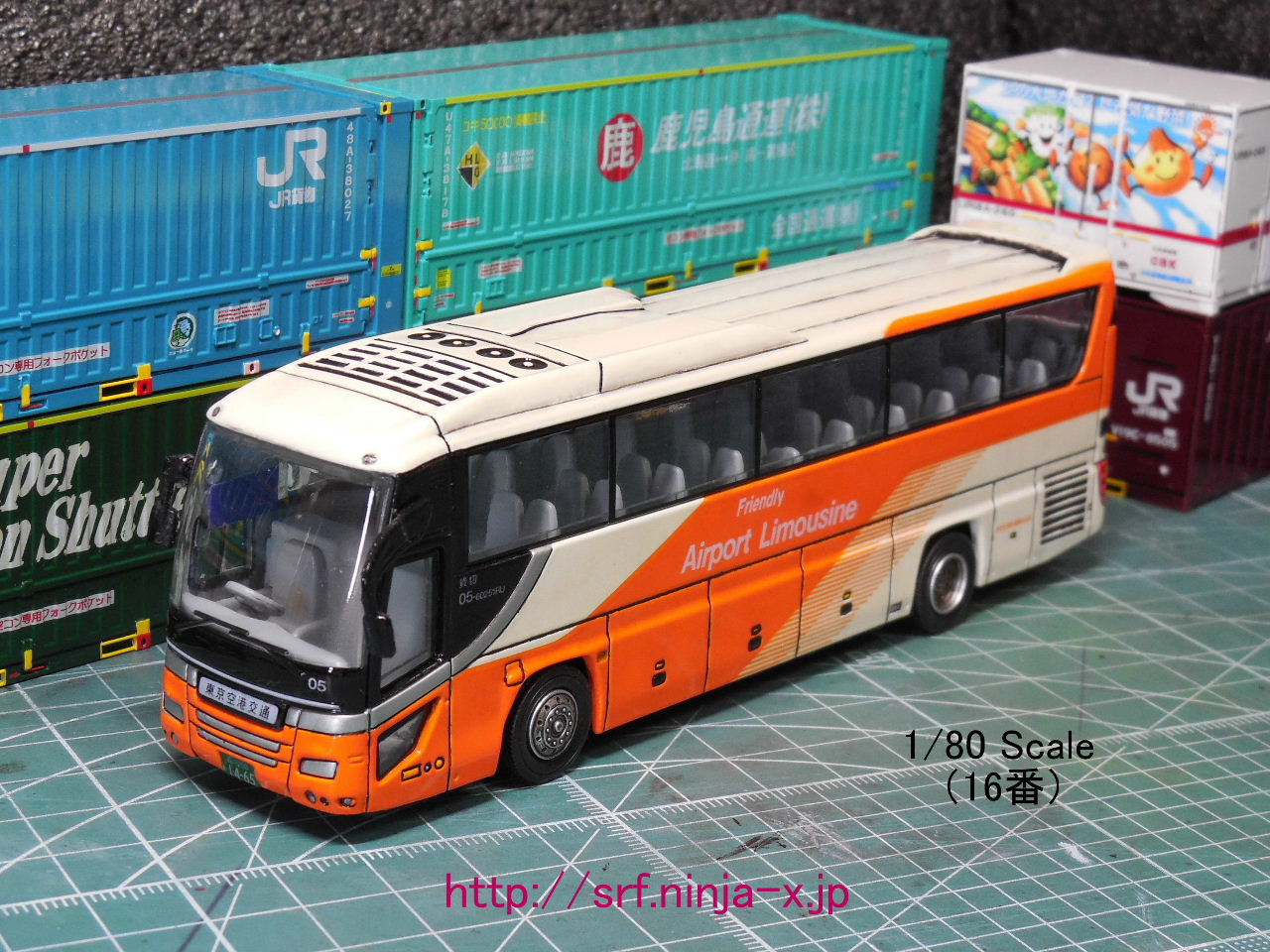 ワンマイルの1/80・バス模型、改造5台目!2006年12月29~31日、東京ビッグサイトで開催された「コミックマーケット71」に合わせて、東京ビッグサイト~秋葉原間で運行された一日限定のシャトルバス、フジエクスプレス・東京営業所所属のリゾート53・T8435(日産ディーゼル工業・スペースウィング KL-RA552RBN/西日本車体工業 MC-02 SD-II)が模型化されたもの(メロンブックス10周年記念“めろバス”具体化プロジェクト)。