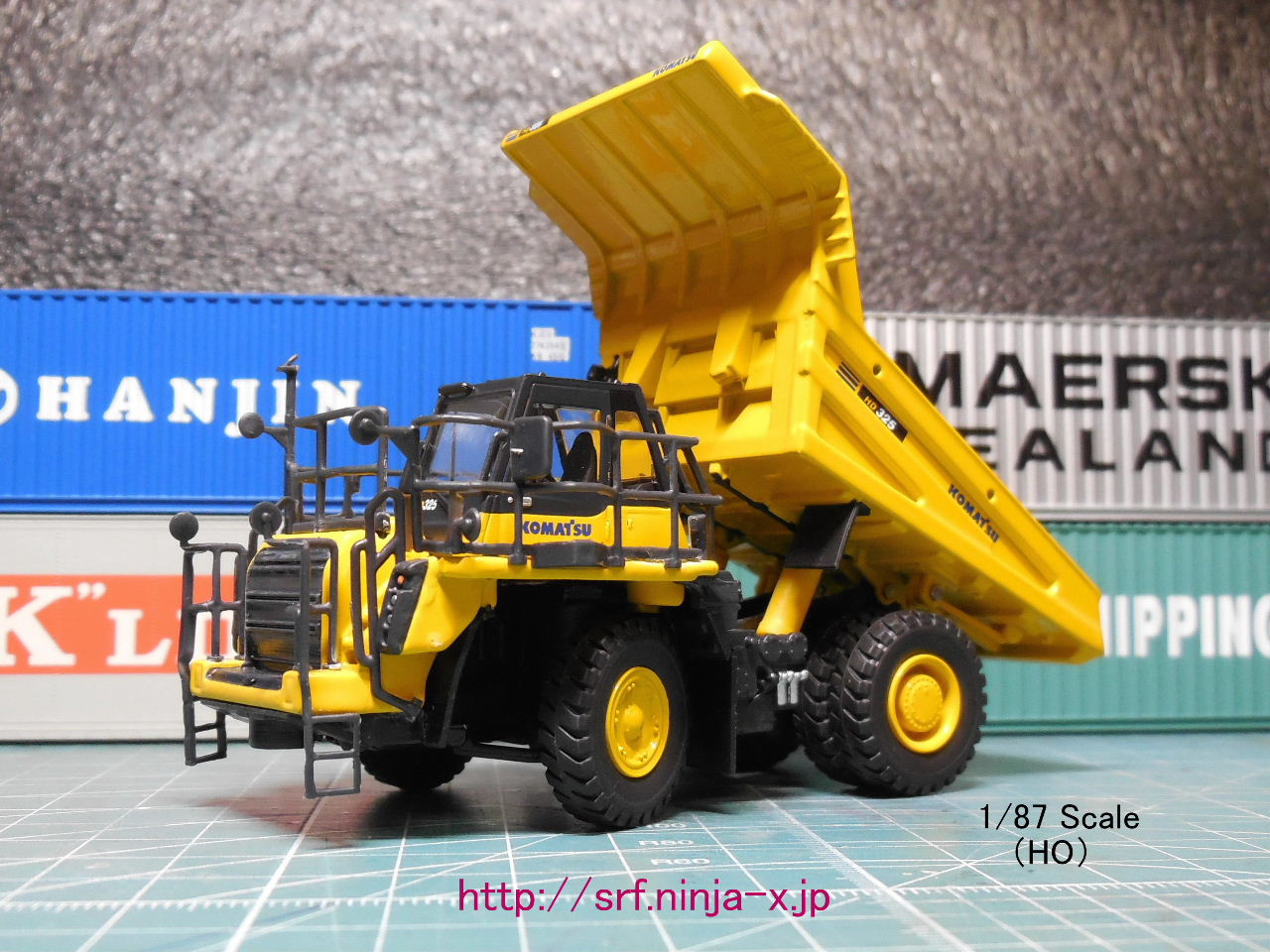 コマツの株主優待「大型ダンプトラック HD325-8」の完成品・ダイキャストモデルをゲット(無改造)!小松製作所(6301)の株式を300株以上、且つ保有期間が3年以上となる株主に進呈される粗品。製造メーカー等の記載は無し。しかし、1/87(HO)の建機・重機系ミニカーで且つ日本の重機メーカーの車種は、この株主優待品シリーズのみではないだろうか。今のところ、Diecast MastersのHO SeriesもCaterpillar(CAT)社の車種のみの製品化。。