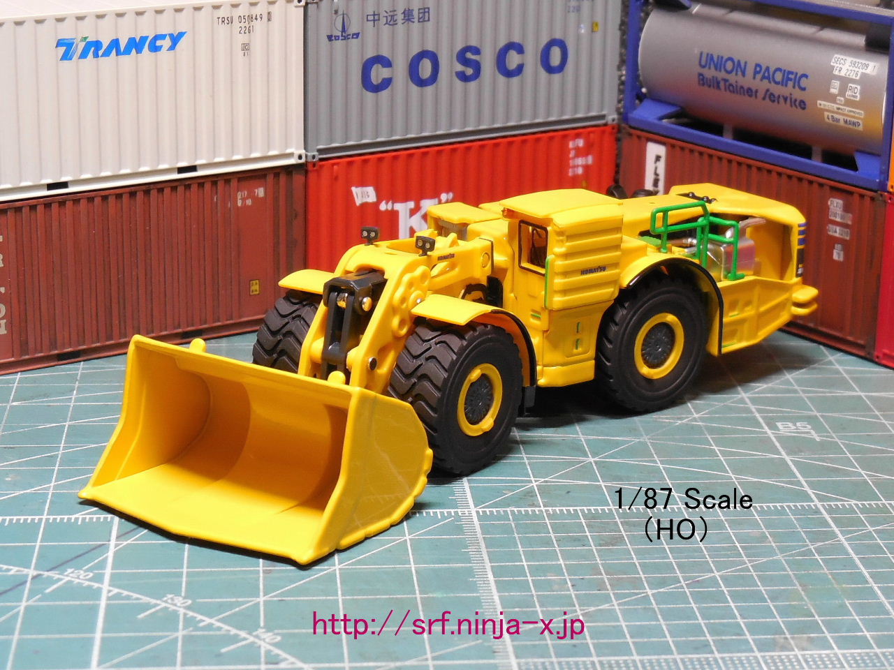 地下の鉱床から鉱石を採掘用の鉱山機械LHD(ロードホールダンプ)という事で車高が低くてタイヤがデカく、まるで映画『エイリアン2』「装甲兵員輸送車 M577-APC」の様で中々カッコイイ。全体的にはリアルだが、手摺りが太過ぎる点が気になる。機械自体がデカイ為、違和感無しで1/80使用できるか否か。