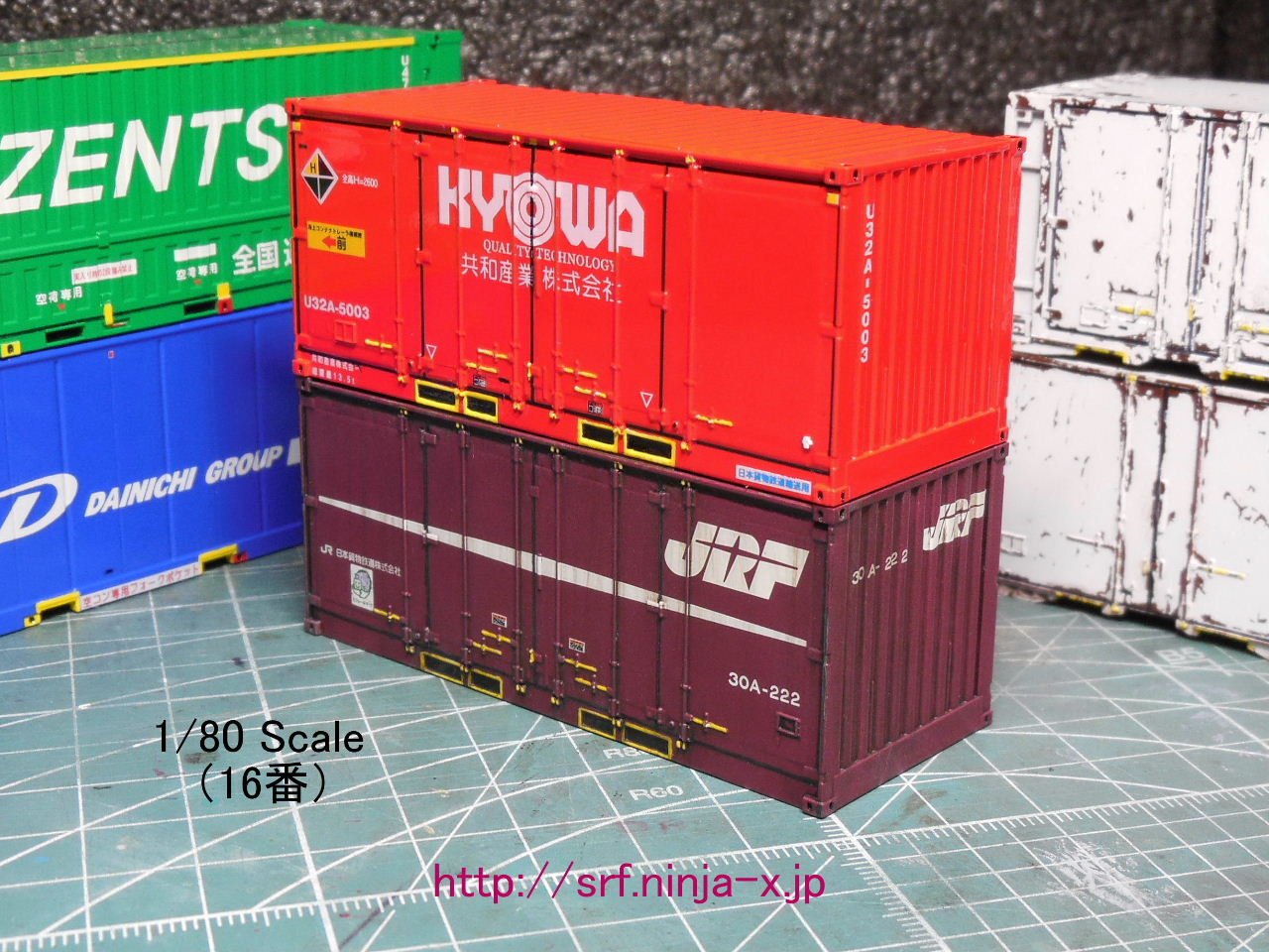 ・上段:TOMIXのHO-3127「JR 30A形コンテナ(赤色)」改の「20ftコンテナ(U32A-5000)」