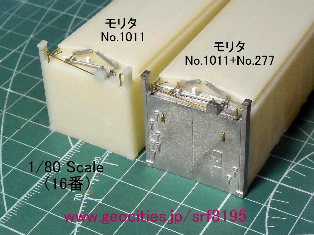 ・上段:モリタのNo.1011「UM13Aコンテナ(DOWA通運)」(同社のNo.277「1/80 UM13Aオプション妻板」取付)改