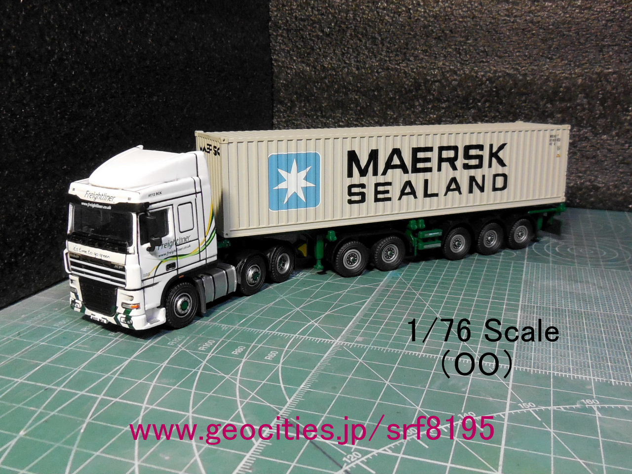 ...イギリスの4大貨物鉄道会社の一つ・Freightliner Groupの「コンビトレーラー(Combi trailer)」の完成品・ダイキャストモデル!本車と同じOO(1/76)スケールである、C = Rail = Intermodal製とHornby製の各種20ft・40ftコンテナの積載が可能。箱出しまんまでは中国製ダイキャスト感が否めない為、アタマとホイールのみ、スミ入れ改造を実施。