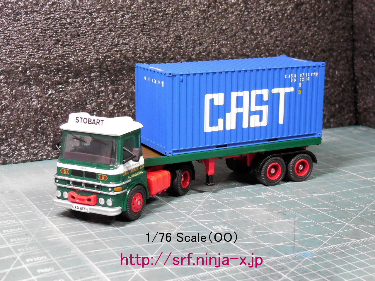 完成品のままでは中華製ダイキャスト感が丸出しの為、アタマとホイールのみ、スミ入れ改造を実施(一部箇所、スミ入れ箇所を誤認)。本製品と同じOO(1/76)スケールである、C = Rail = Intermodal製とHornby製の各種20ft・40ftコンテナの積載が可能。