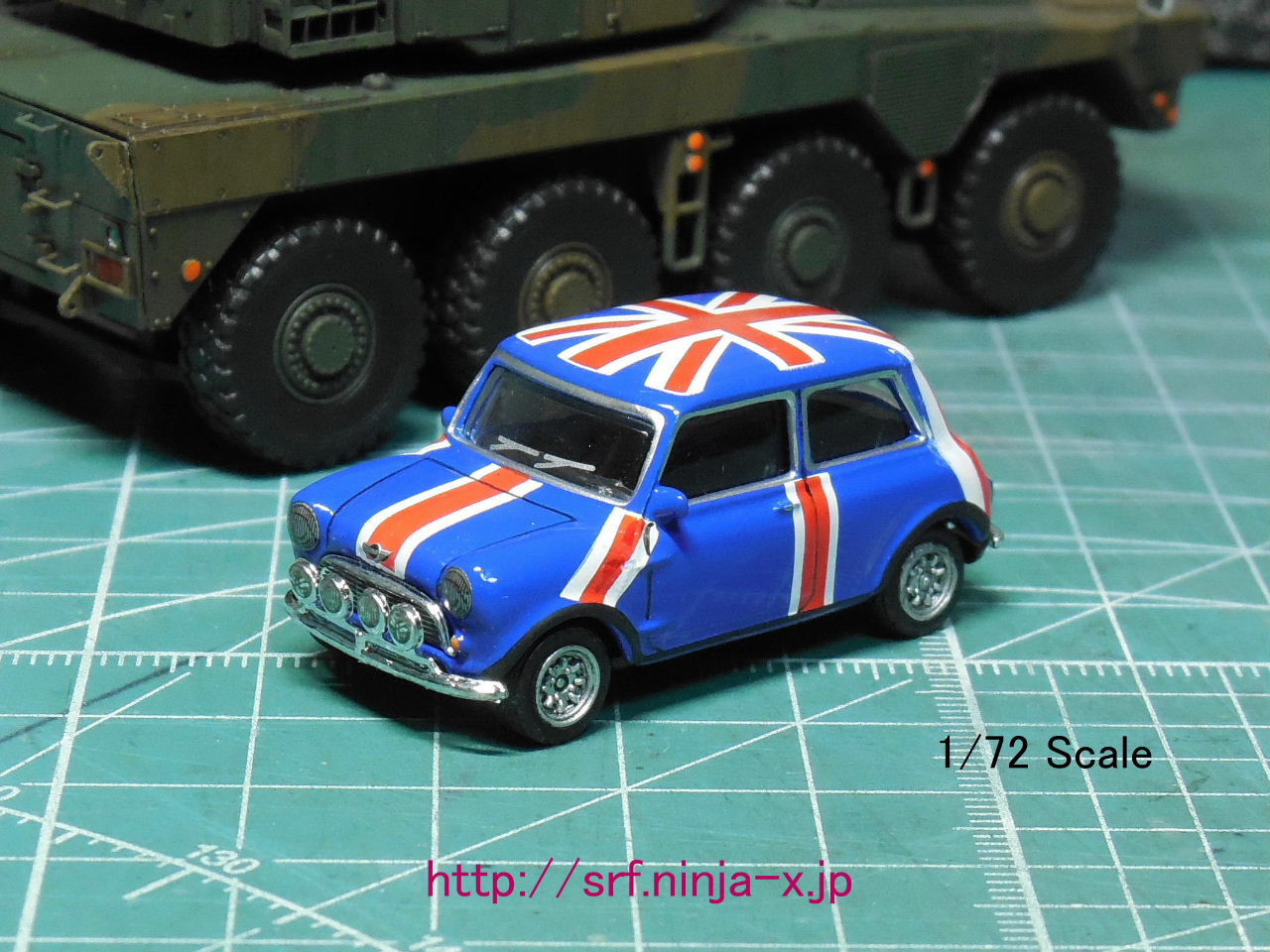 今後、乗用車系のミニカーの収集は1/72スケールに統一したいと思う。何故ならば、各種1/72・AFVプラモと合わせる事が出来るからだ。