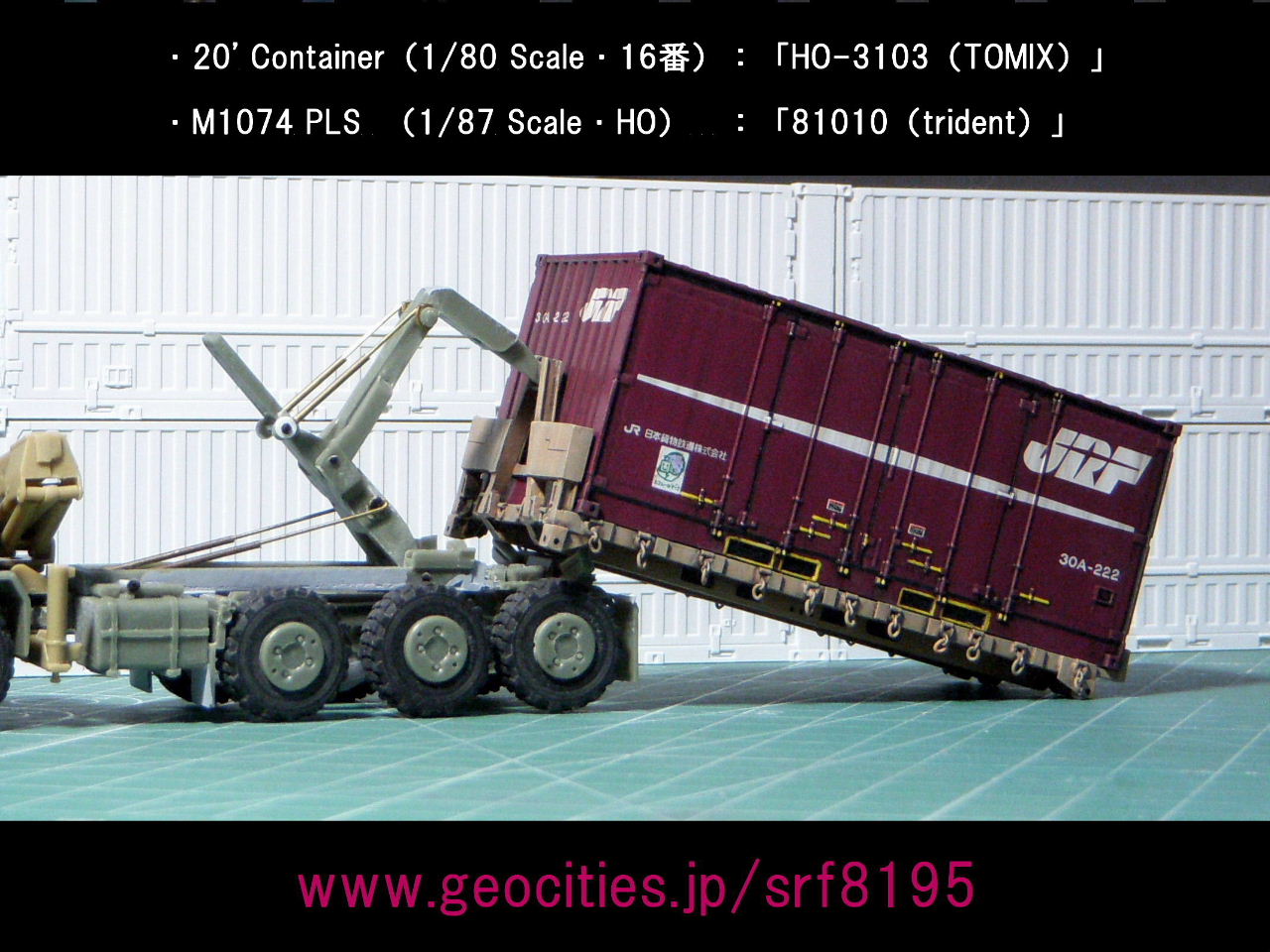 日本国内の重量規制/道路法(車両制限令)をクリアする、20ft=JR-30A container+M1077 FlatrackのHEMTT LHS (Load Handling System)のアームロール荷役!!