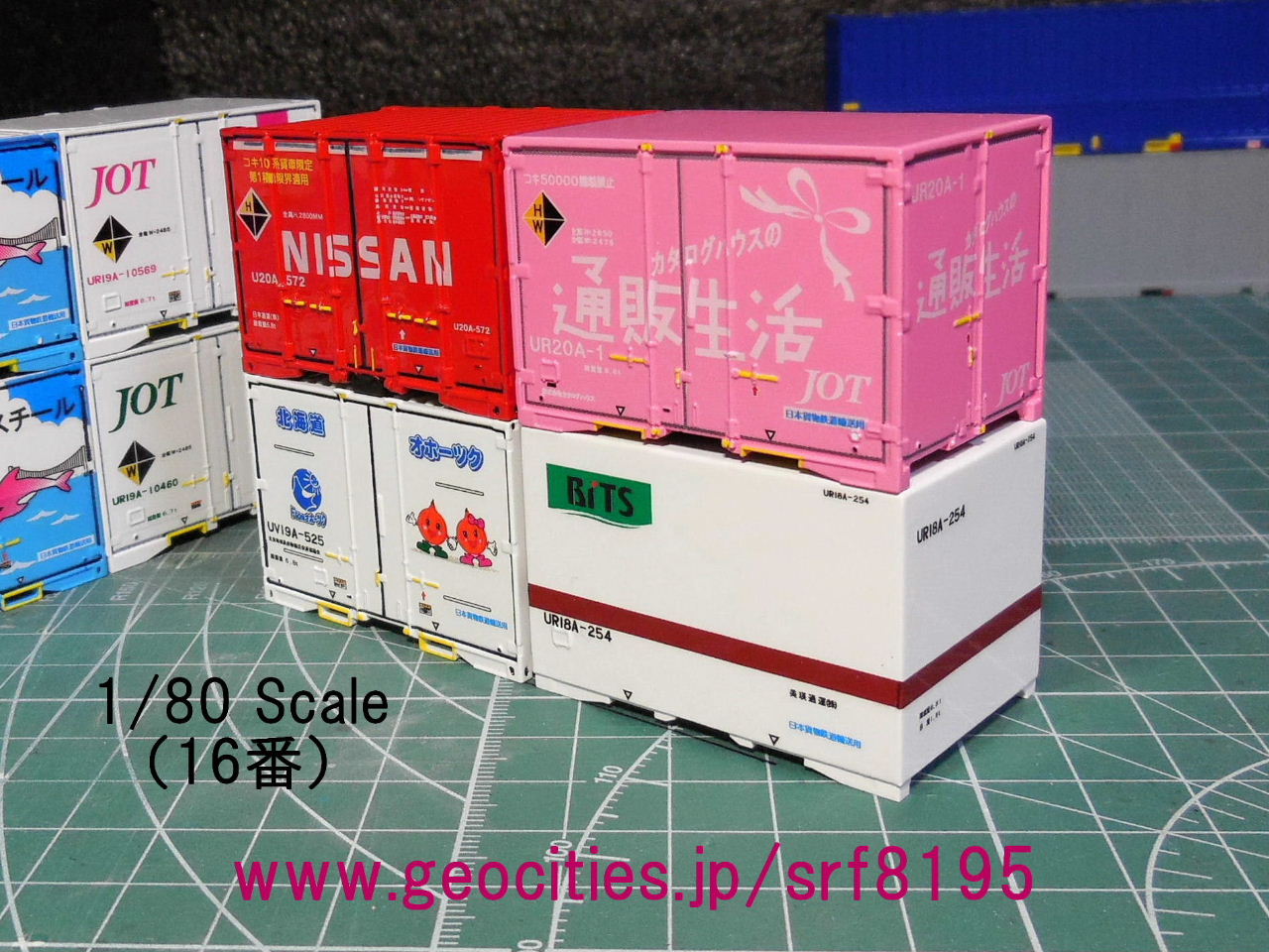 ・下段左:TOMIXのHO-3114「JR 19D形コンテナ(鉄道コンテナ輸送50年記念カラー)」改の「12ftコンテナ(UV19A-500)」