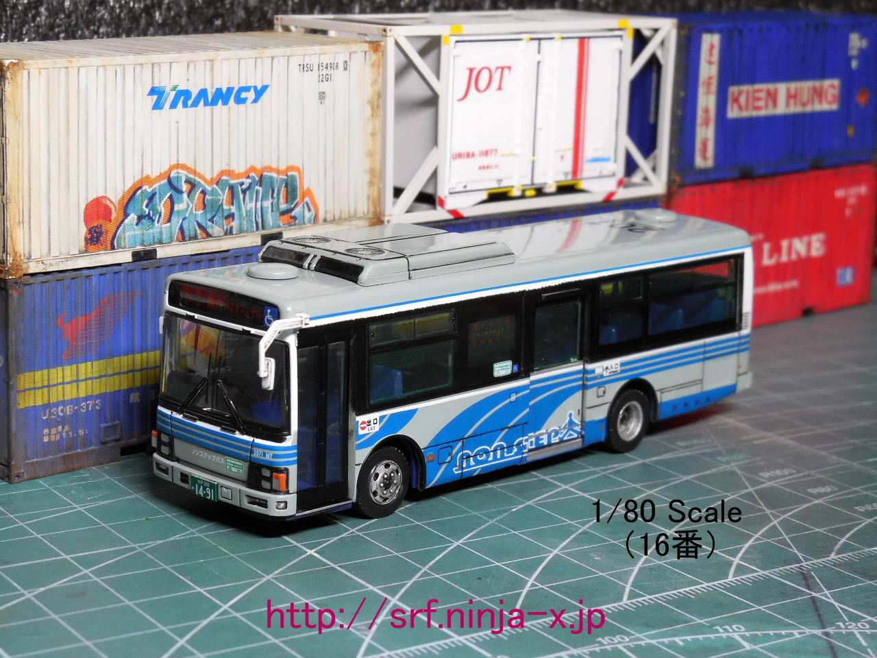いすゞ・エルガミオ(ERGA Mio)「PA-LR234J1改(中型路線バス)」関東鉄道・2017MTの1/80スケール・16番モデル。改造箇所は、エナメル塗料とガンダムマーカーでスミイレを行ったのみ。