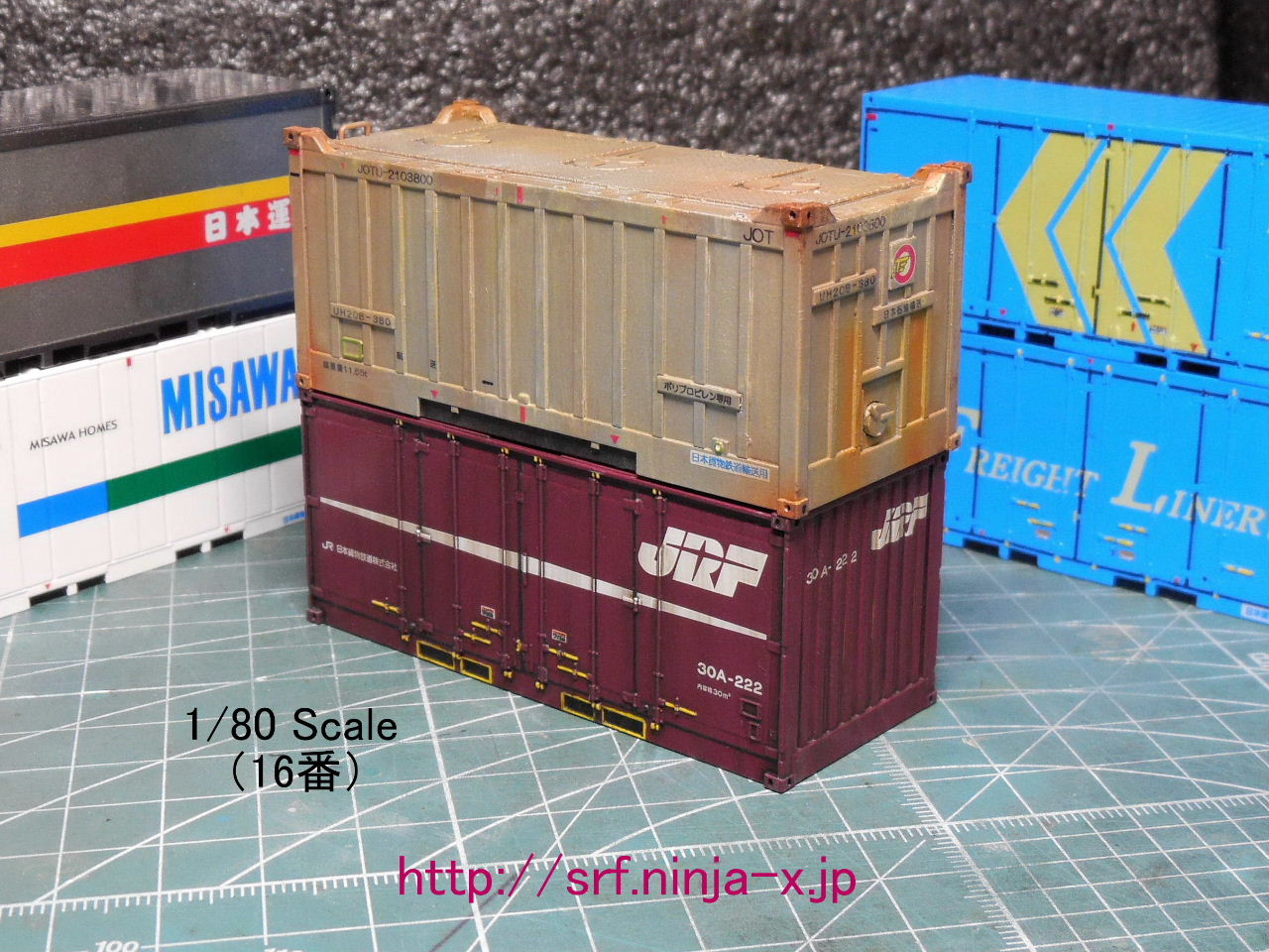 ・上段:甲府モデルの「1/80 第13弾 UH20Bタイプコンテナ ペーパーキット」改の「20ftコンテナ(UH20B-0)」
