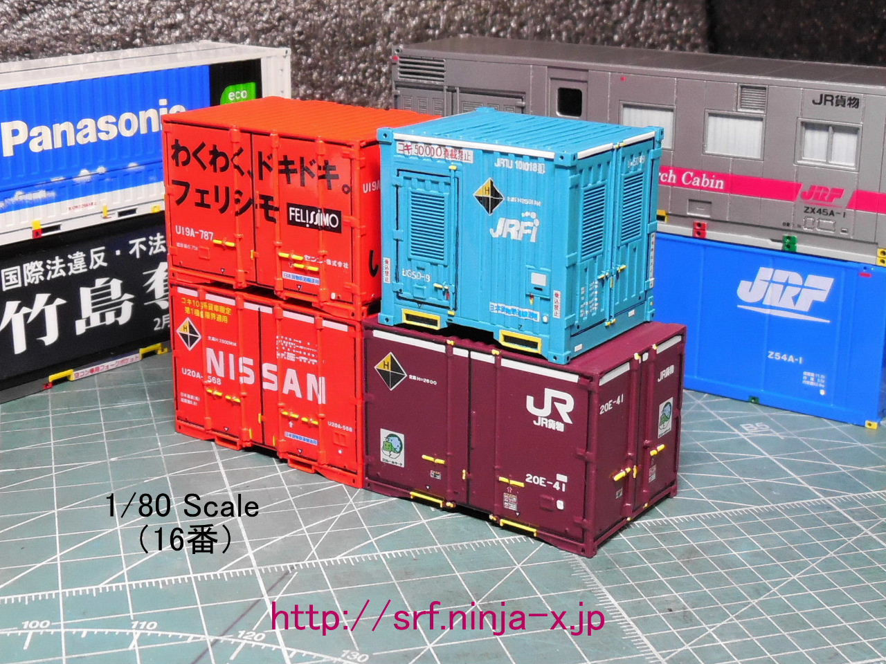 ・上段右:甲府モデルの「1/80 第5弾 リーファーコンテナ(電源コンテナ(UG15D)付)」改の「12ftコンテナ(UG15D-19)」