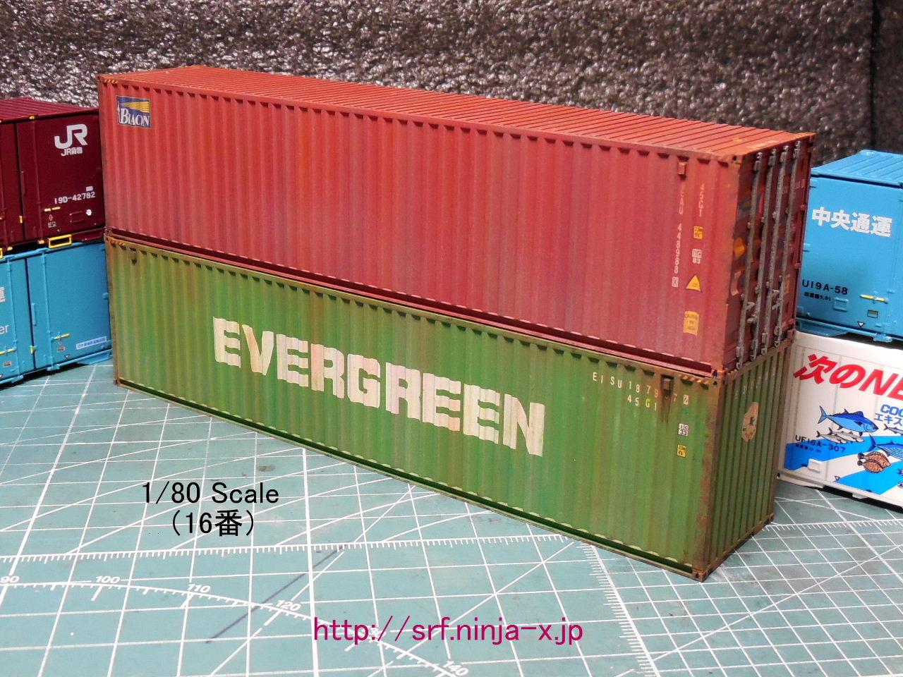 ・下段:モデルアイコンの733A7「1/80 海上コンテナ 40ft-Hi Cube EVERGREEN」改