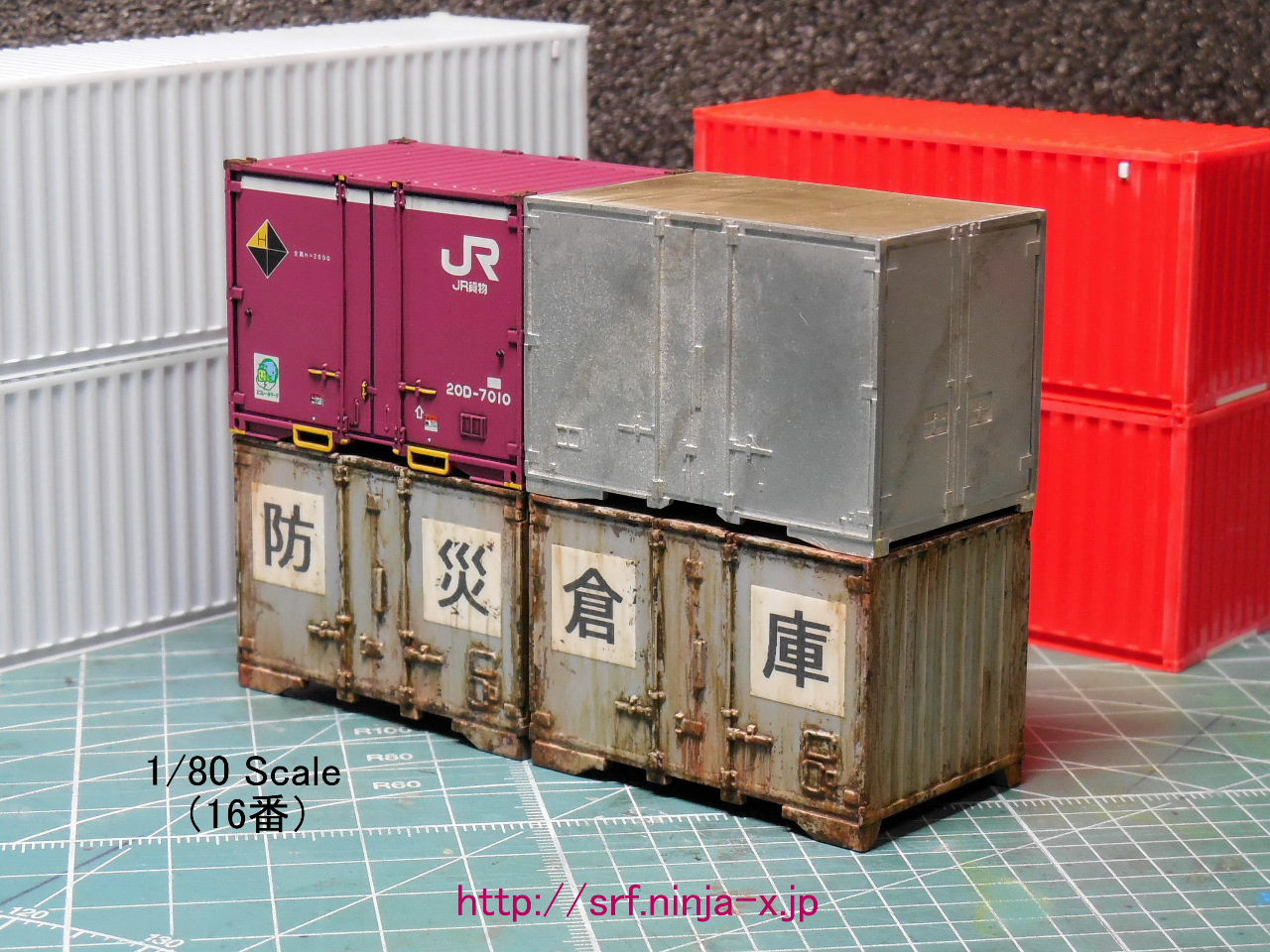 ・下段右:ホビーモデルのNO,1002「5トンコンテナ」改の「12ftコンテナ(防災倉庫)」
