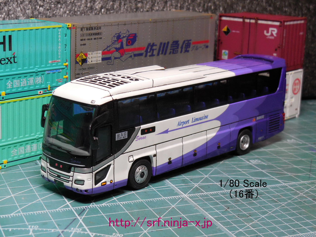トレーンの1/80ダイキャストスケールモデル・フェイスフルバス、改造8台目!セレガ!対象年齢3才以上の幼児向けミニカーの為、細部の塗装等が大雑把~箱出しのままでは単なる玩具・おもちゃ~ディティールアップ改造が必須(地元のバスではない為、詳細不明。Sorae(ソラエ=空へ)?)。