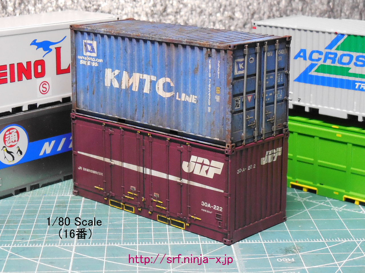 ・下段:TOMIXのHO-3103「JR 30A形コンテナ(赤色)」改の「20ftコンテナ(30A-222)」