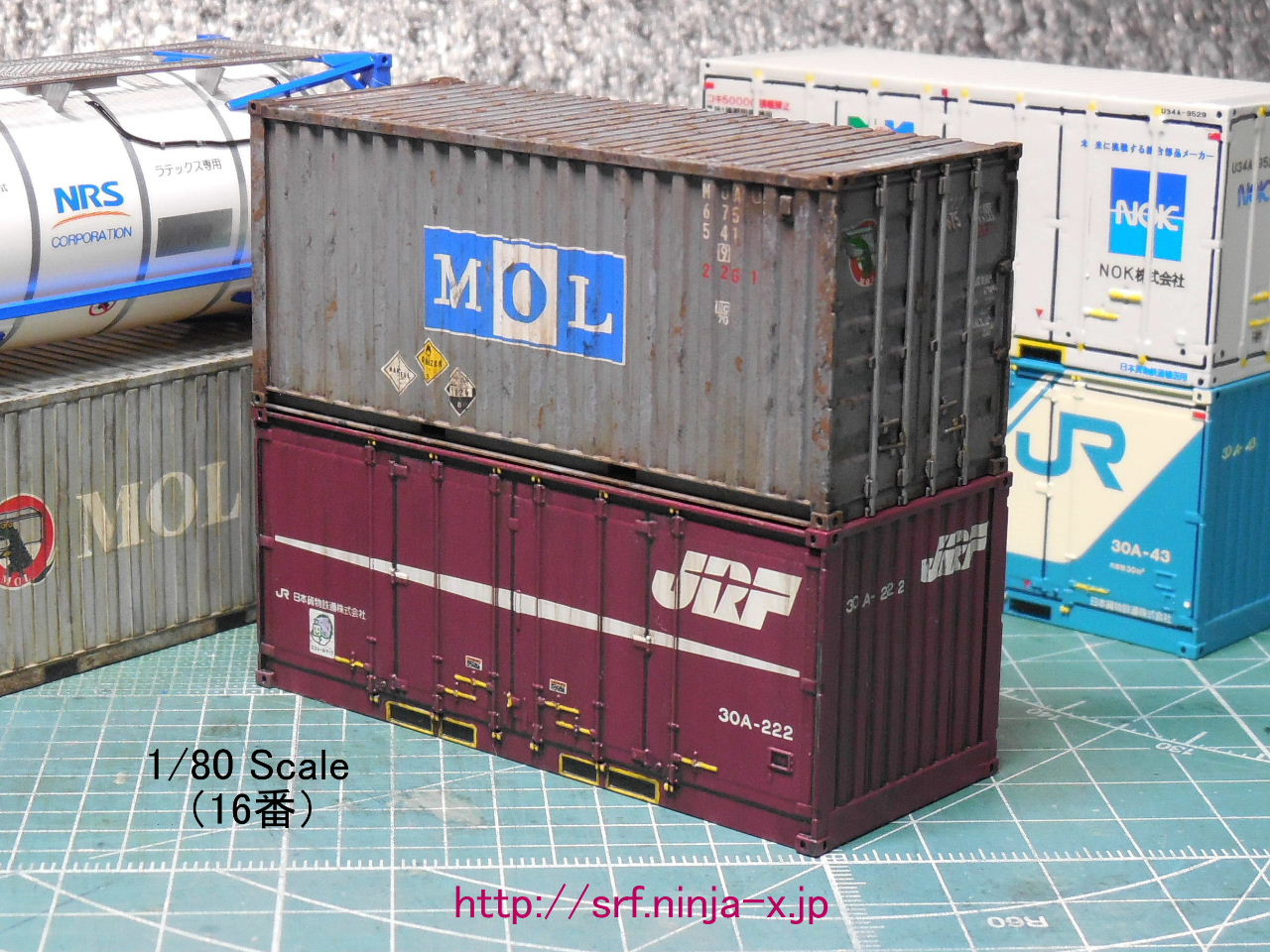 ・下段:TOMIXのHO-3103「JR 30A形コンテナ(赤色)」改の「20ftコンテナ(30A-222)」